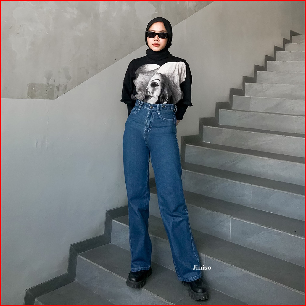 Jiniso - Highwaist Adjustable Baggy Under Age Jeans