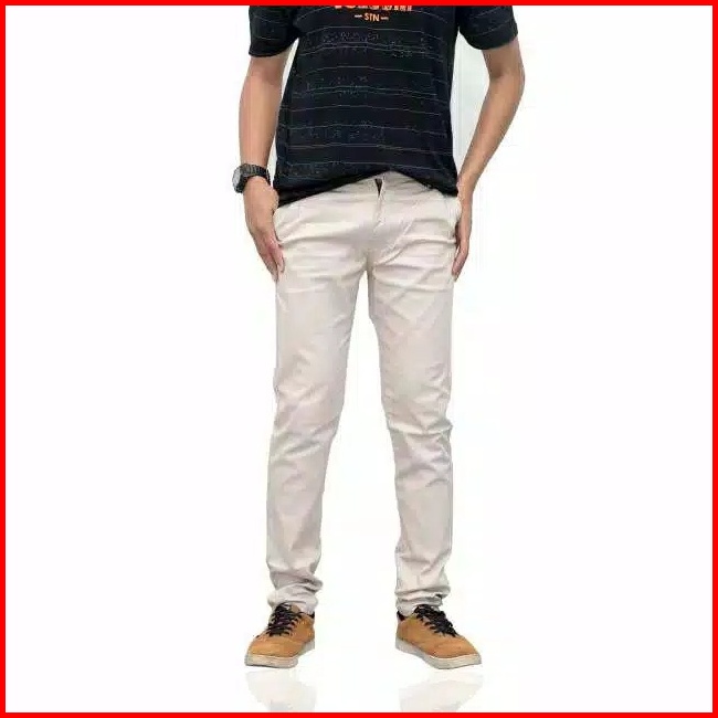 Celana Chino Panjang Pria Slimfit Kerjaharian Santai Casual Formal Hitam Abu Cream Mocca Size 27-38