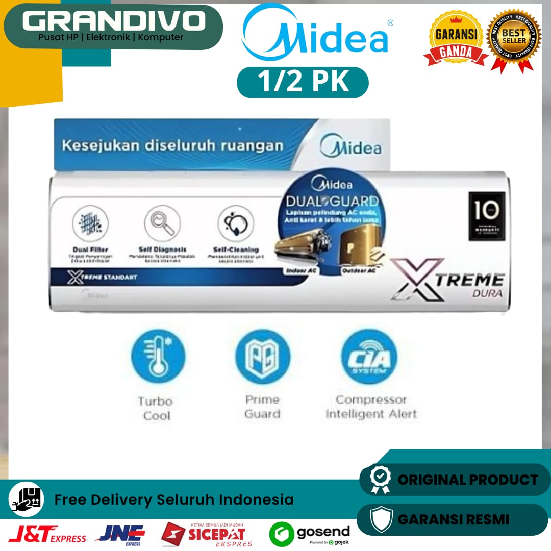 PAKET PASANG AC Midea Low Watt 1/2 PK R32 MSAF05CRN / MSAF 05 CRN Garansi Resmi - Grandivo
