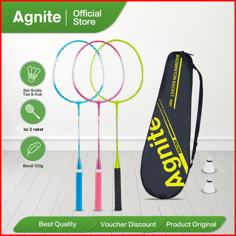 Agnite Raket Badminton Set Raket Bulutangkis Badminton Racket Isi 2 Gratis Tas Kok Badminton Er301