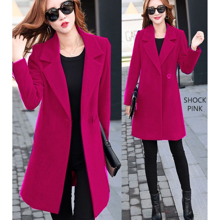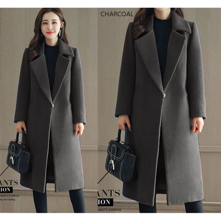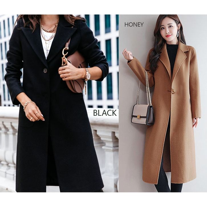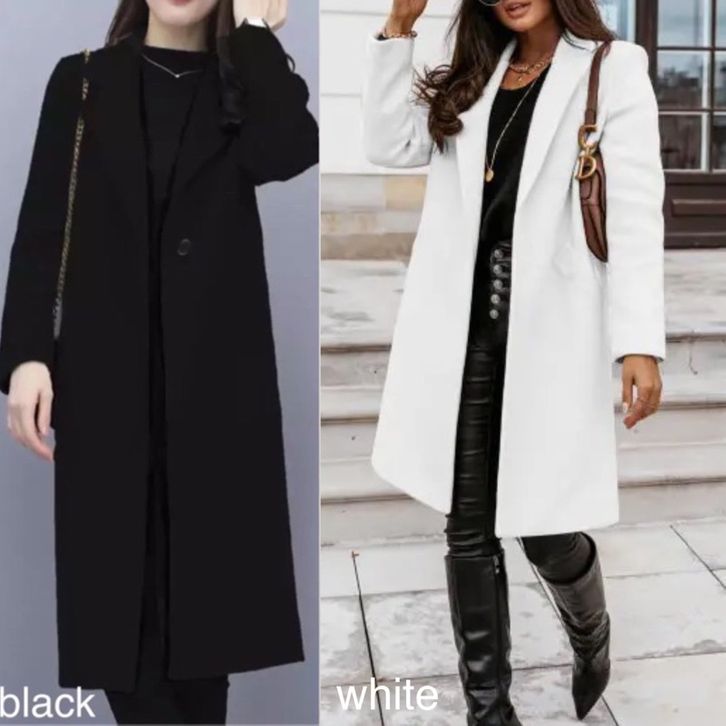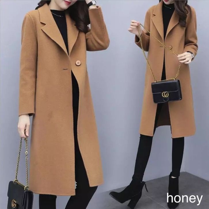 Jaket Jas Coat Blazer Panjang Tanpa Kantong Polos Fashion Ootd Kinian Formal Kasual Santai Wanita Lengan Panjang