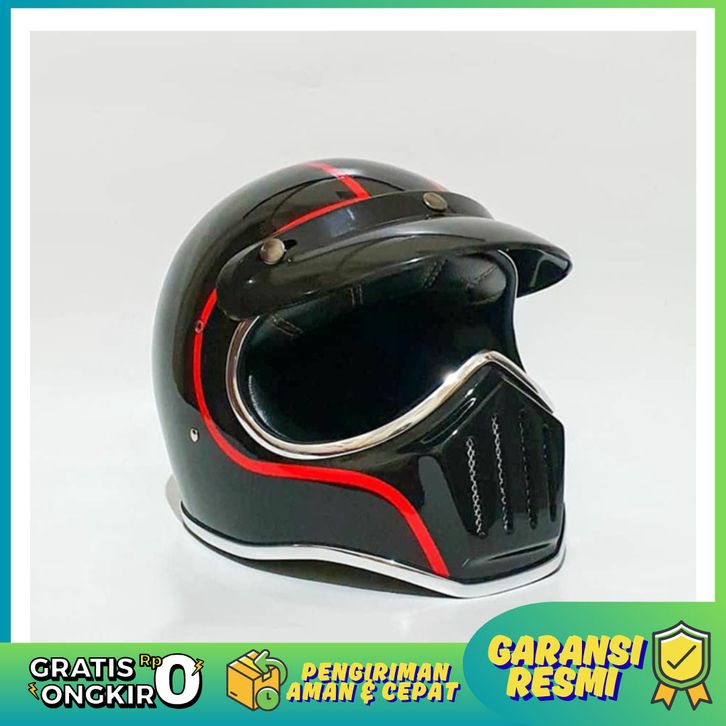 HELM CAKIL BANDIT RETRO CUSTOM WARNA HITAM STRIP RED
