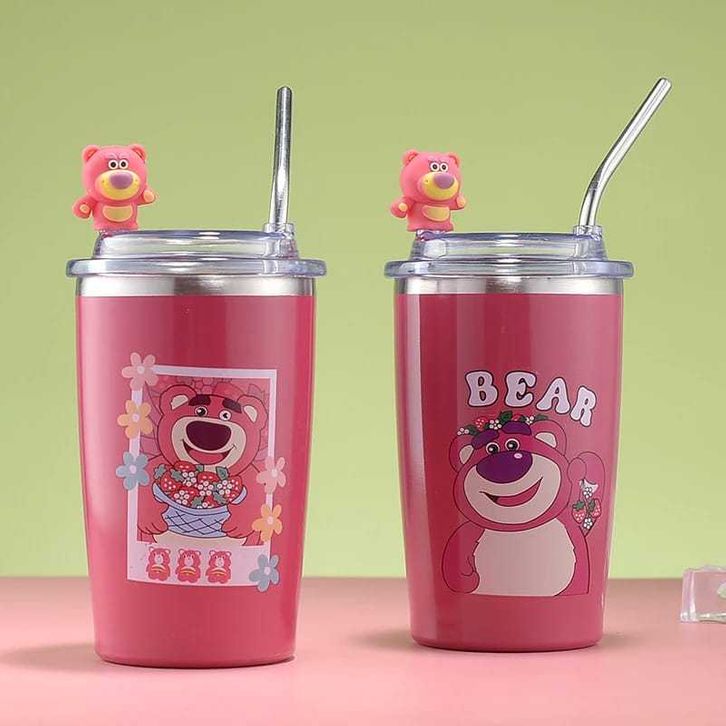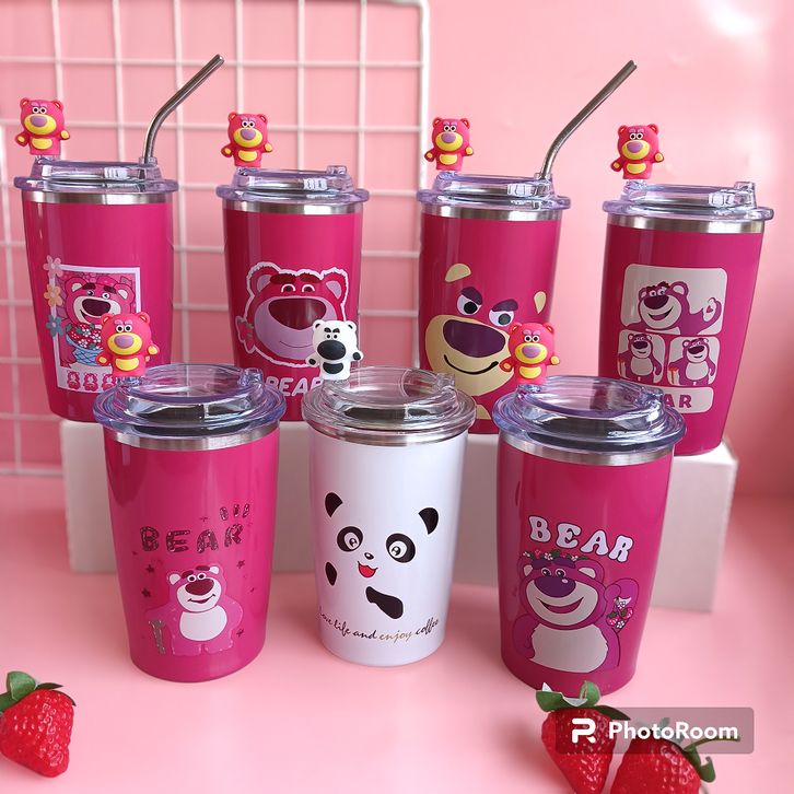 Termos Tumbler LOTSO Strawberry Bear 500ml / Botol Minum Mug Cangkir Kopi Termos Stainless Steel