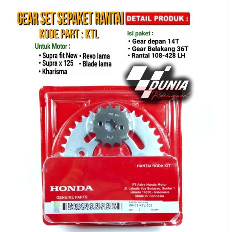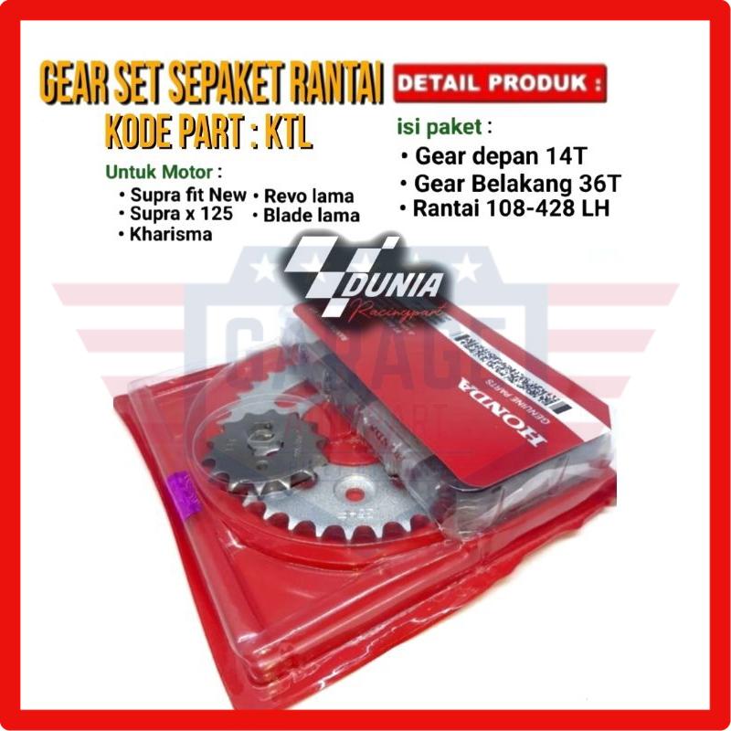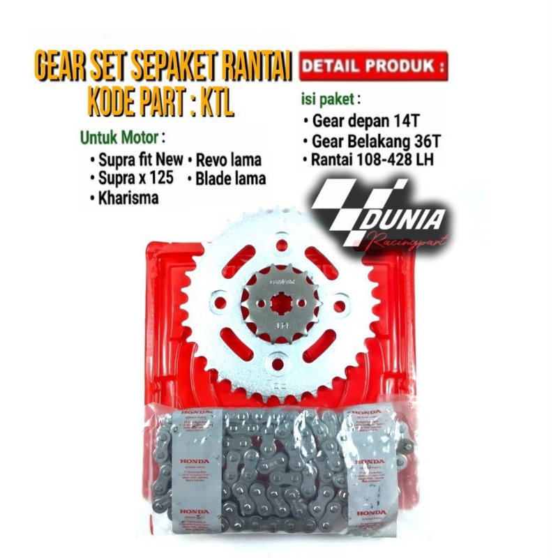 GEAR SET SEPAKET RANTAI KHARISMA SUPRA X 125 SUPRA FIT NEW REVO LAMA KTL
