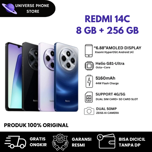 HP XIAOMI REDMI 14C RAM8/256GB 6GB/128GB BARU ORIGINAL SEGEL KAMERA HD GARANSI RESMI 12 BULAN GRATIS ONGKIR BISA DICICIL