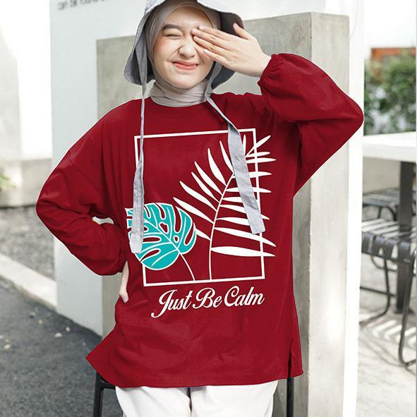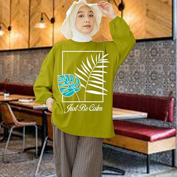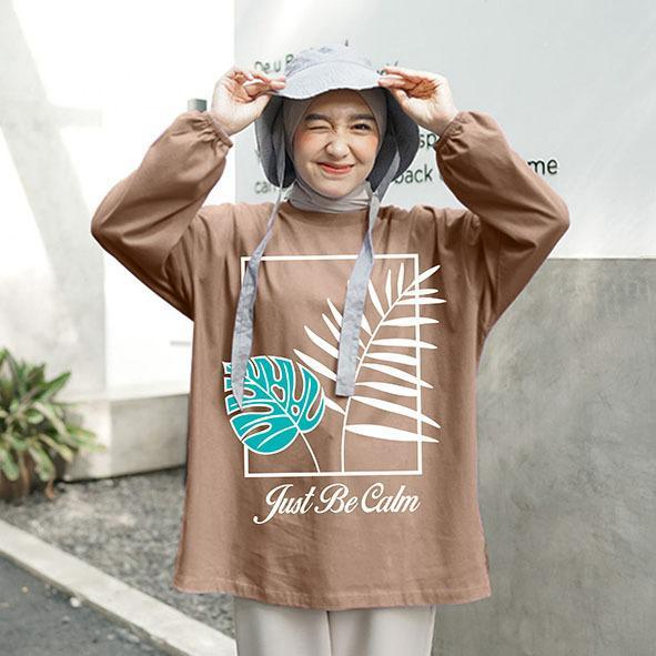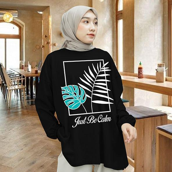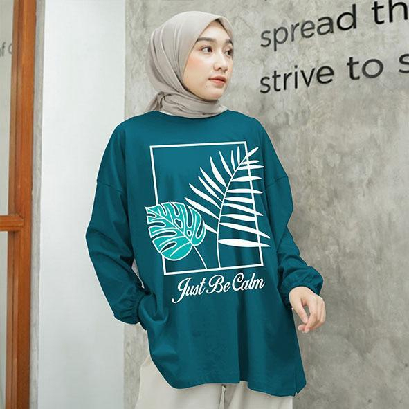 Kaos Wanita Lengan Panjang Karet Ld 130cm Motif Daun Bahan Adem Kaos Wanita Casual Digital Print Terbaru