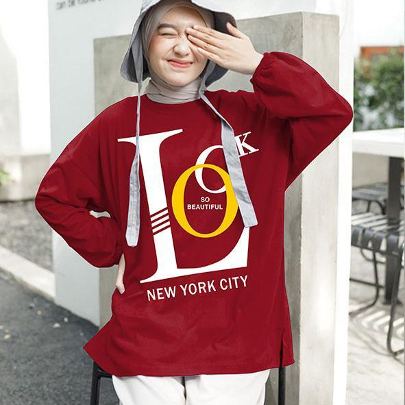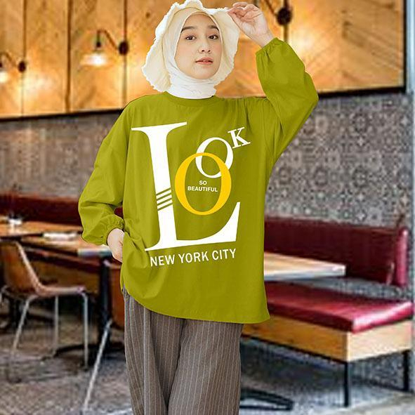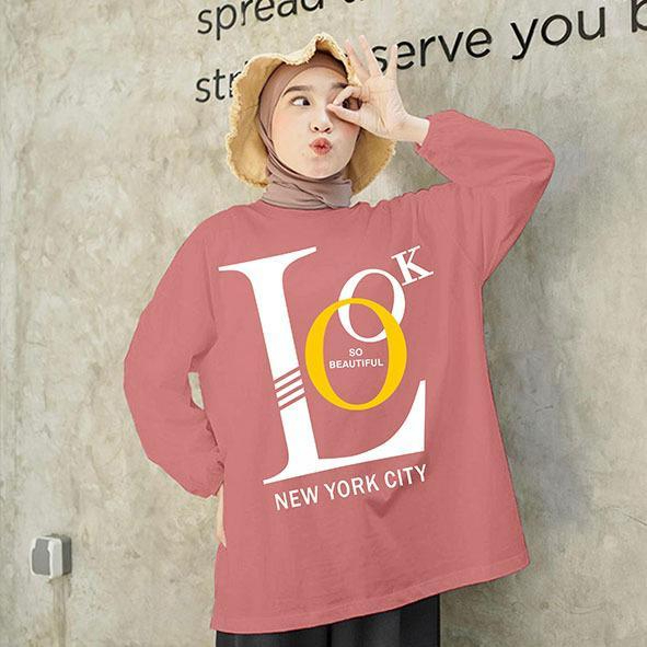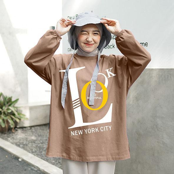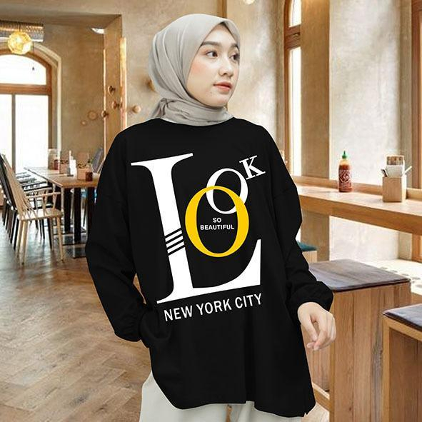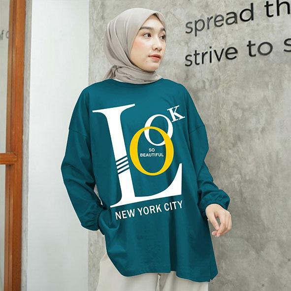 Baju Kaos Wanita Oversize Aesthetic Lengan Panjang Karet Ld 130cm Motif Look Blouse Oversize Jumbo Bahan Adem