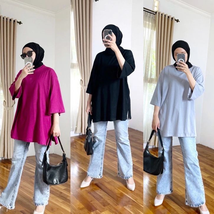 Kaos Oversize Daily Kekinian / Top Basic Polos Hijab Friendly - Atasan Kaos Basic Batwing Lengan 7/8