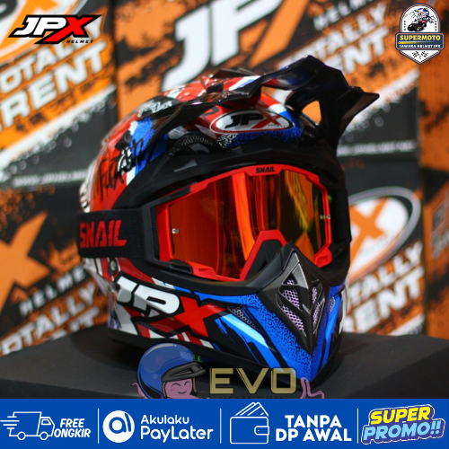 HELM JPX CROSS_FOX1 SERI X6 - SUPER BLACK / BLUE & GOOGLE SNAIL / HELM TRAIL / HELM CROSS / HELM /GRATIS ONGKIR