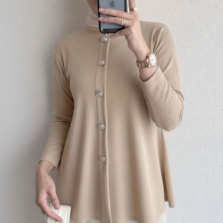 Blouse Wanita Kekinian Vania Blouse Knit Wanita Lengan Panjang Fashion Trend Korea Style Atasan Blouse Wanita Terbaru
