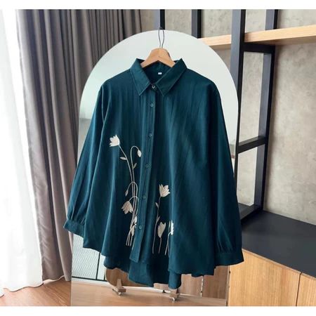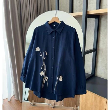 Atasan Blouse Wanita Terbaru Kimmy Blouse Bordir Linen Premium Blouse Wanita Lengan Panjang Oversize Trend Korea Style
