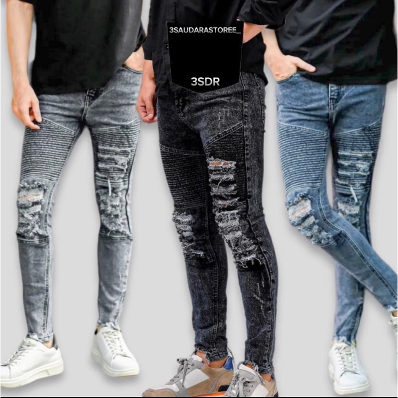 BIKERS RIDER RIPPED - CELANA JEANS PRIA SOBEK LUTUT RIPPED - JEANS CELANA PANJANG SNOW PRIA