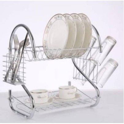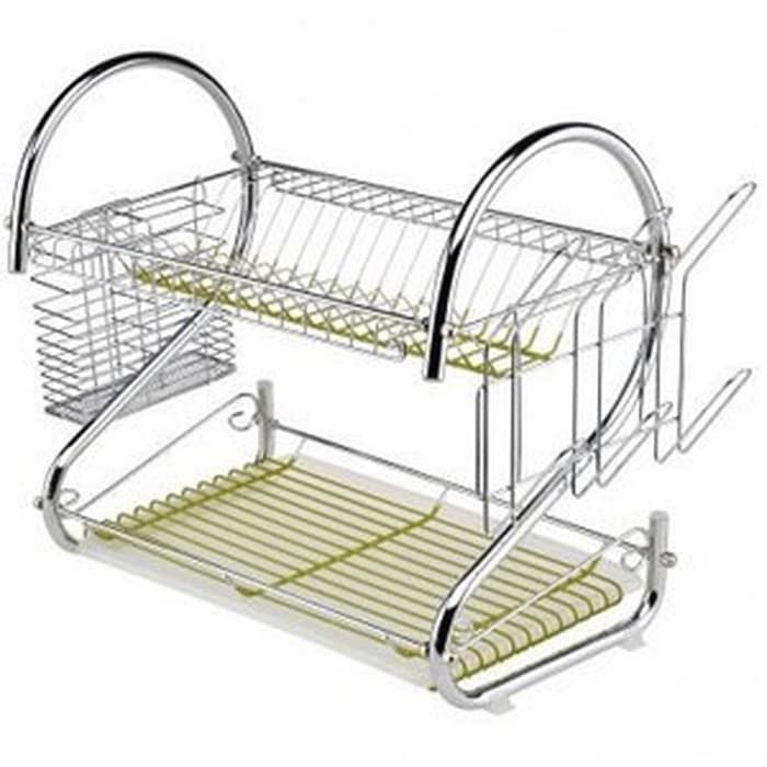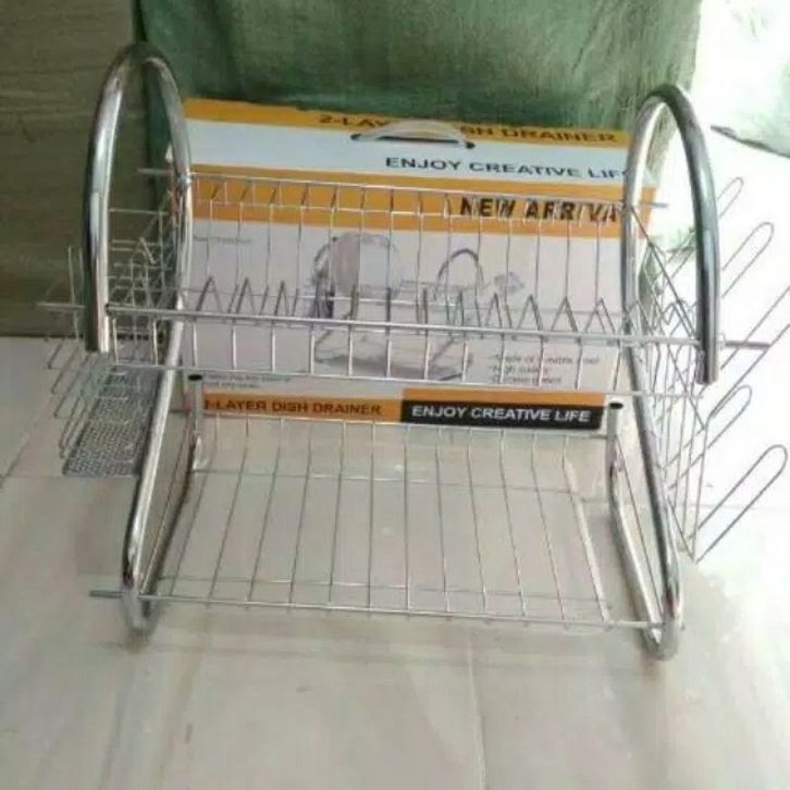 FREE ONGKIR rak piring 2 susun layer tingkat stainless gelas dapur dish desainer murah
