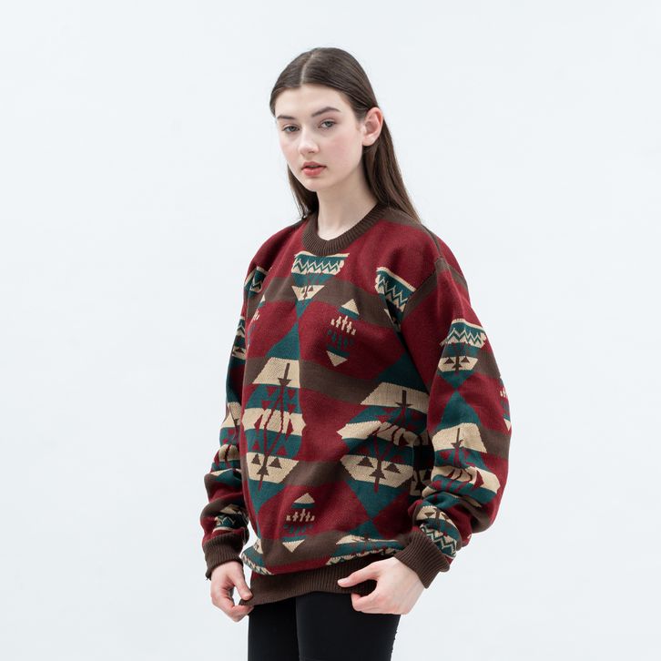 Terlaris Kevas Locca Nordic Knitted Sweater - Wi ne