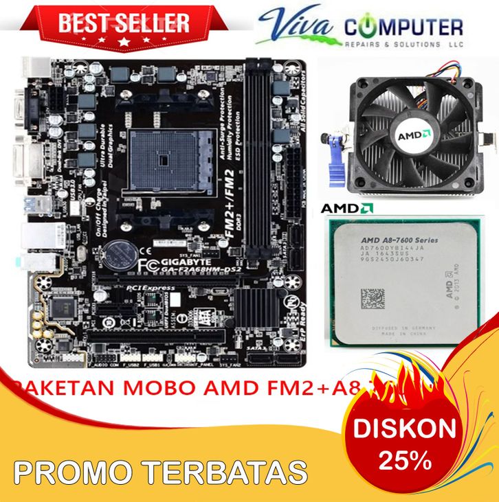 PAKET MOTHERBOARD MOBO FM2 + PROCESSOR A8 7600 3.1GHZ + FAN
