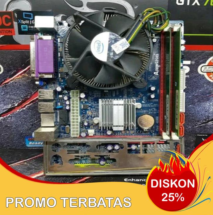 PAKET MOTHERBOARD G41 PROCESSOR INTEL CORE 2 DUO MEMORY RAM 4GB DAN FAN