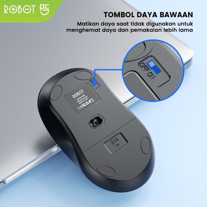 ROBOT Mouse Wireless 2.4GHz Optical 1600DPI Kursor Akurat Cocok untuk PC Laptop M206 Original M315