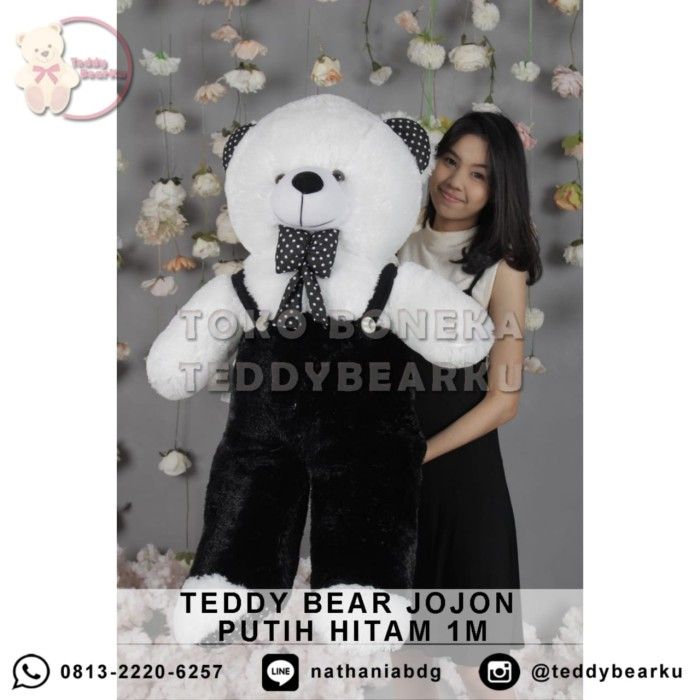 BONEKA BERUANG TEDDY BEAR JOJON POLKADOT JUMBO 1 METER LUCU - KADO