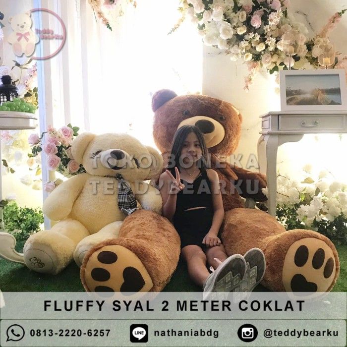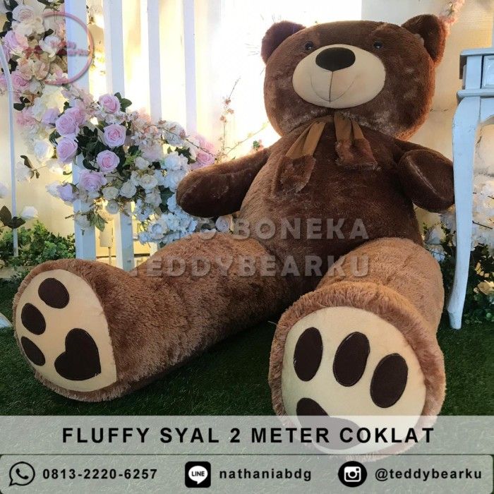 Boneka Teddy Bear FLUFFY SYAL MEGA JUMBO 2 METER WARNA COKLAT