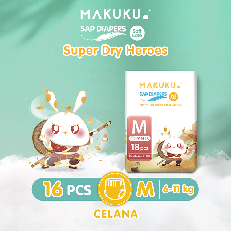 Pampers Makuku Sap Diapers Pants Soft Care Size M18 Pcs Popok Celana Anti Gumpal