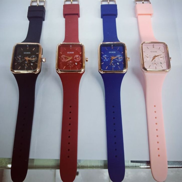 best seller new produk jam tangan wanita Guess kotak YK-0097SXR rubber chrono variasi model AC