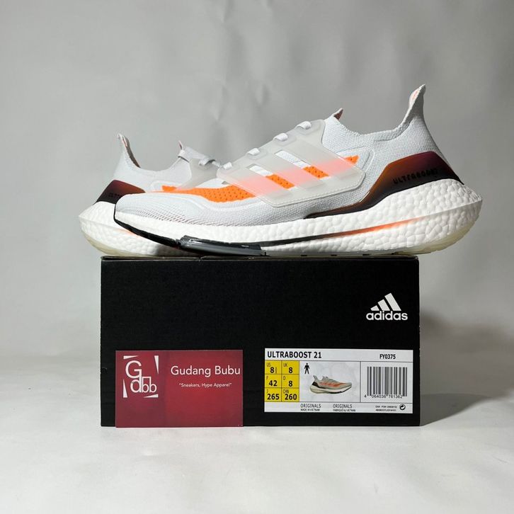 Sepatu Adidas Ultraboost 21 2021 Dash Grey Orange Sneakers Authentic