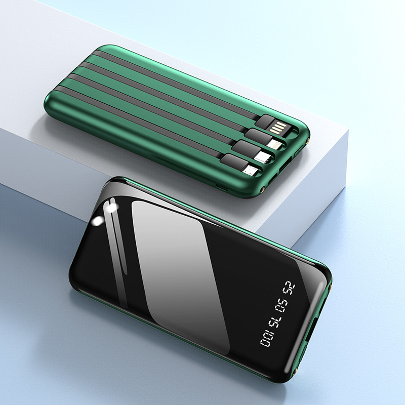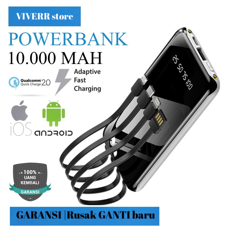 VIVERR Powerbank slim model smart 3 kabel output type C,micro, dan iphone T1 kapasiatas 10.000 mAh fast charging.