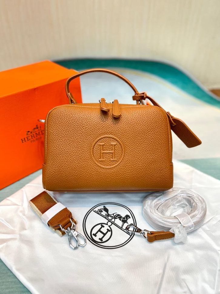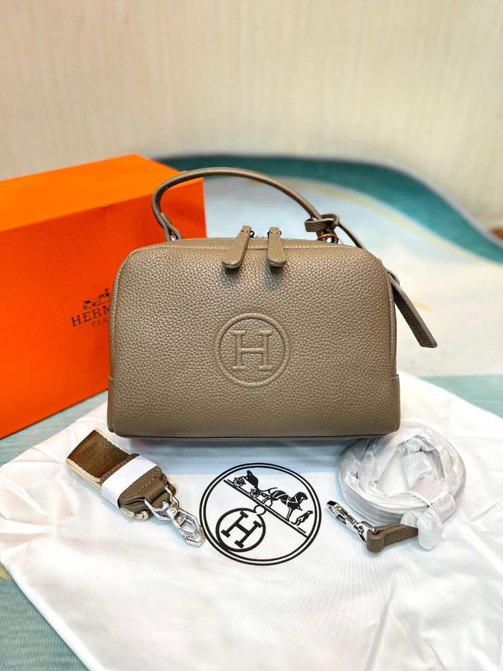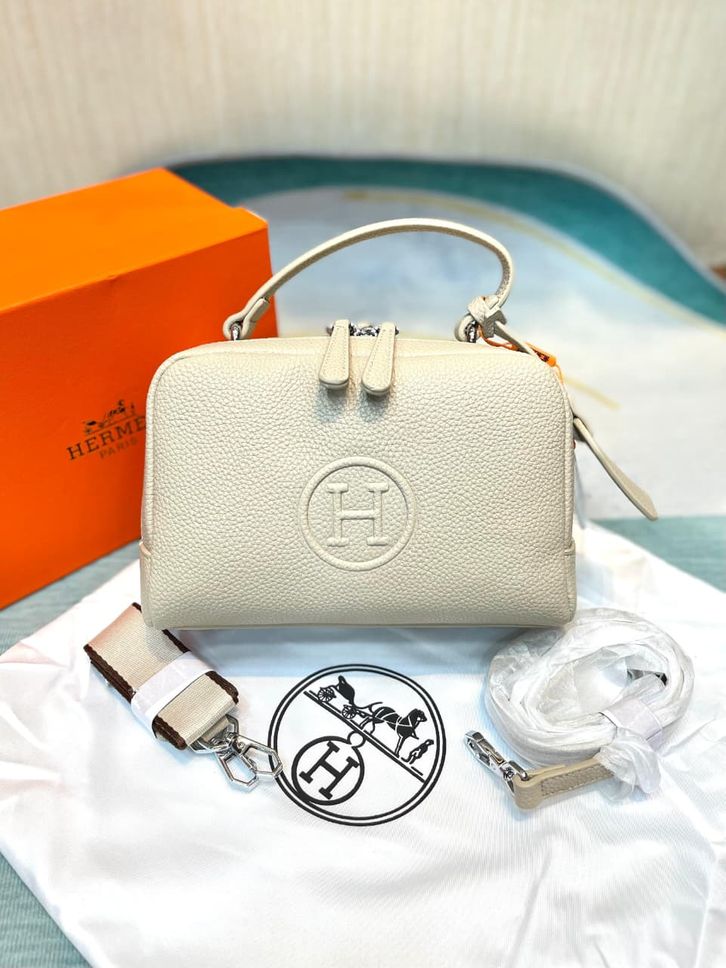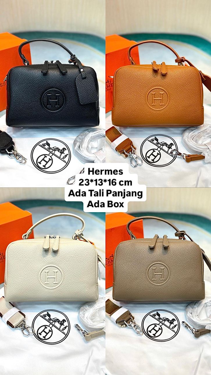 TAS WANITA HERMES DUAL ZIPPER LEATHER PREMIUM/TAS KREMES LINDI SLINGBAG 23CM/TAS BRANDED PROMO