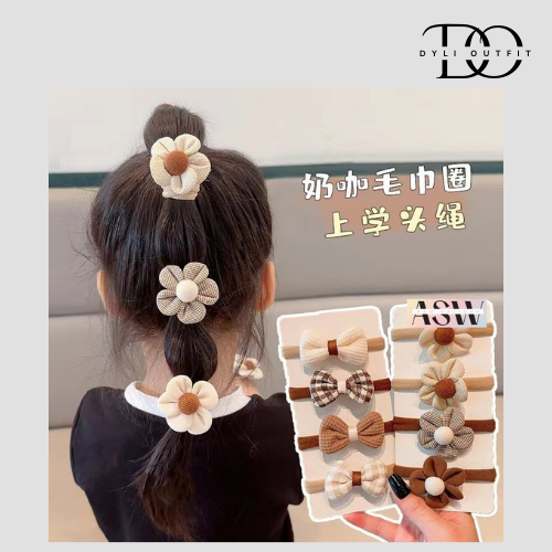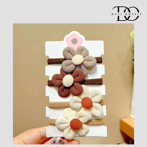 Set Ikat Rambut Bunga Pita Isi 4 Kunciran Anak Korea Hiasan Kepala Fashion Aksesoris ASW KCR19/5pcs