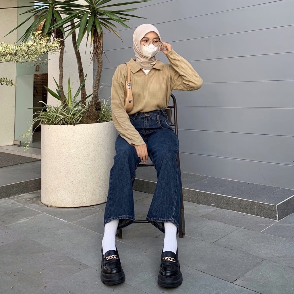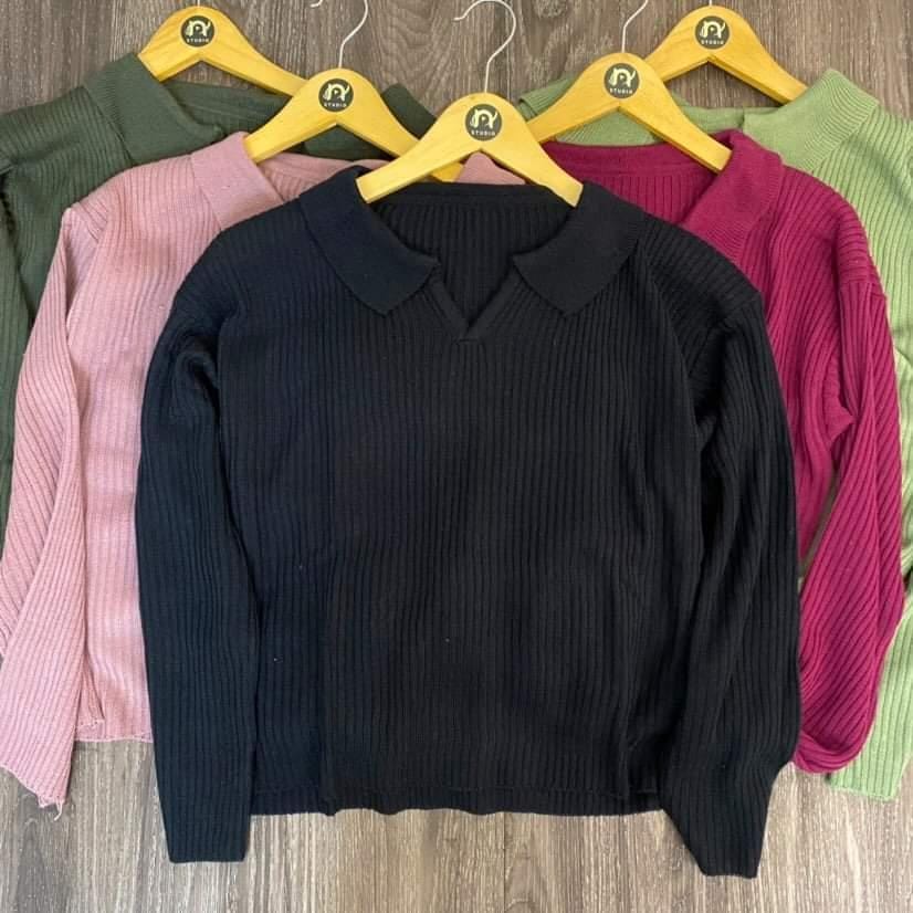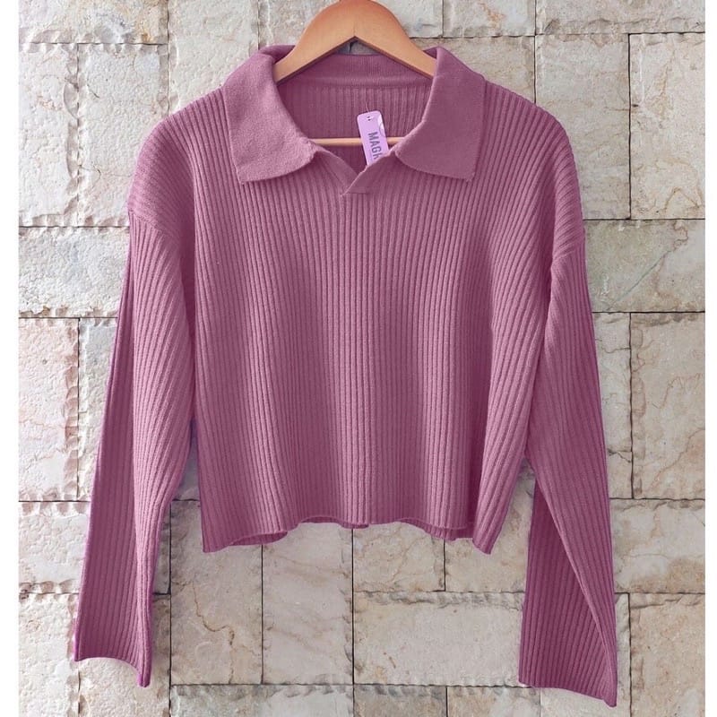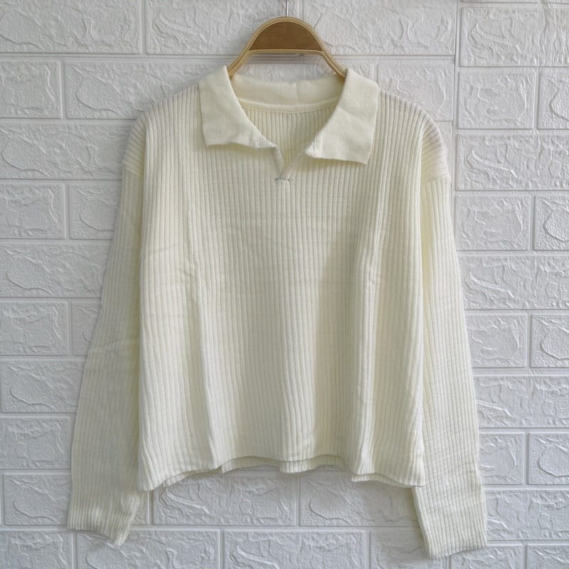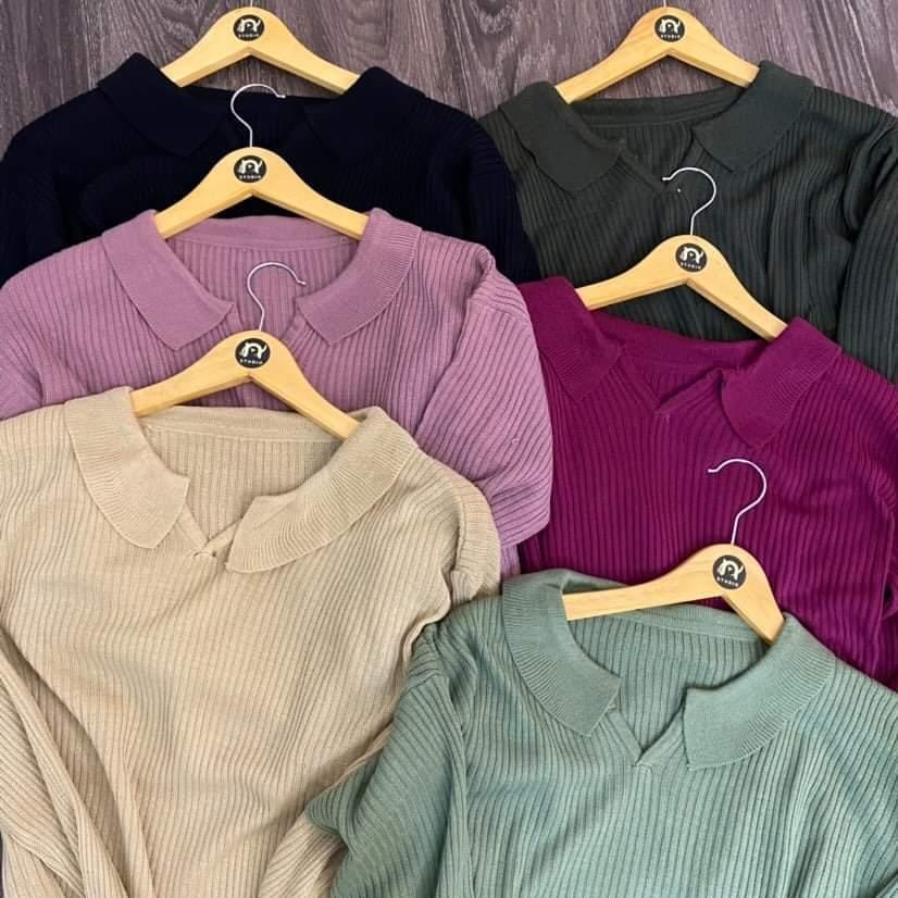 BLOUSE KNIT, BLOUSE RAJUT COLLAR. BLOUSE KOREA CROP RAJUT, ATASAN WANITA KERAH POLO, BLOUSE RAJUT MODEL KERAH POLO