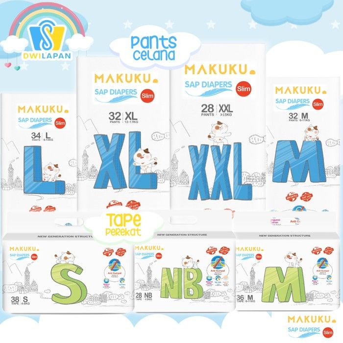 Pampers MAKUKU SAP Diapers Slim Pants / Popok Bayi M/L/XL/XXL popok bayi
