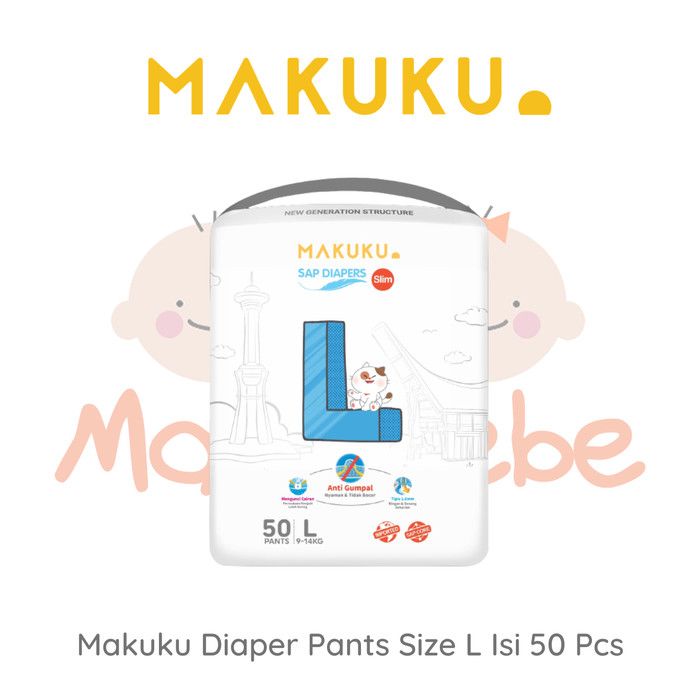 Pampers MAKUKU SAP Diapers Slim Pants L Isi 50 Pcs Popok Bayi popok bayi