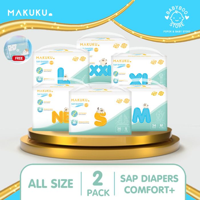 Pampers [2 PACK] MAKUKU SAP Diapers Comfort+ Popok bayi SAP NB/S/M/L/XL/XXL popok bayi
