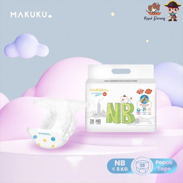 Pampers Makuku Air Diapers SLIM Tape Newborn NB28 popok bayi