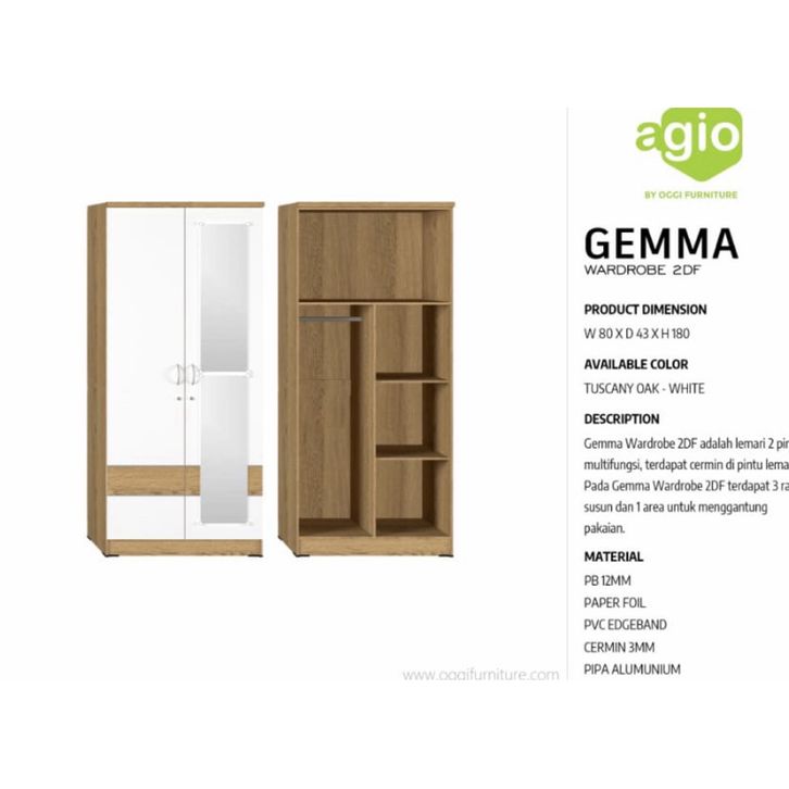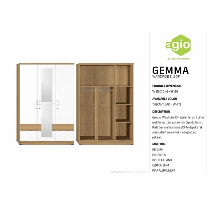 LEMARI PAKAIAN MINIMALIS 3 2 PINTU GEMMA KD MODERN KOKOH ANTI JAMUR DESAIN ELEGAN UNTUK KAMAR TIDUR