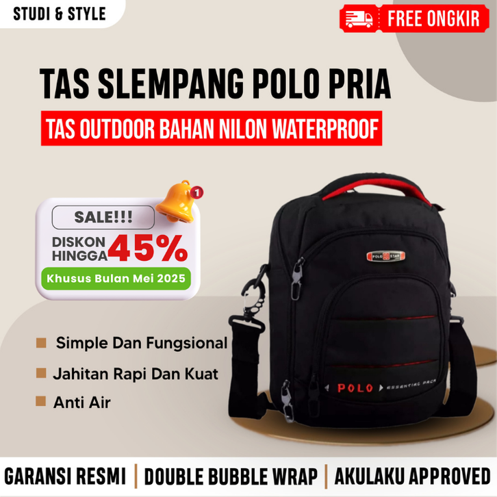 Tas Selempang Cowok Polo Model 39121Tas Sling Bag Cowok Tablet HP Buku 10 Inchi Outdoor Bahan Nilon Waterproof