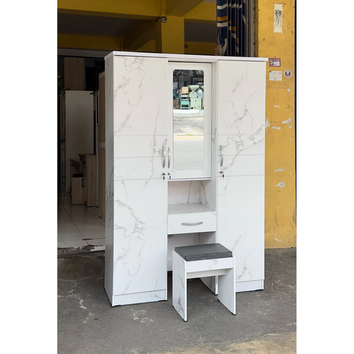LEMARI PAKAIAN 3 PINTU PLUS MEJA RIAS LPMR 0183 MINIMALIS MODERN KOKOH ANTI JAMUR DESAIN ELEGAN KAMAR TIDUR