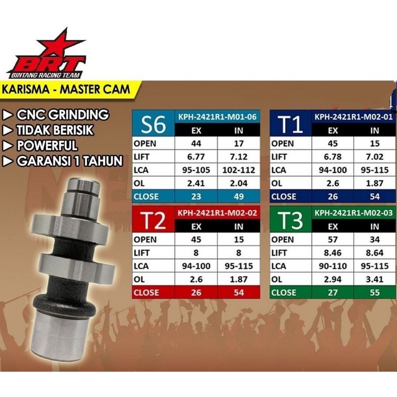 MASTER CAM NOKEN AS RACING BRT SUPRA X 125/KARISMA/KIRANA/KPH