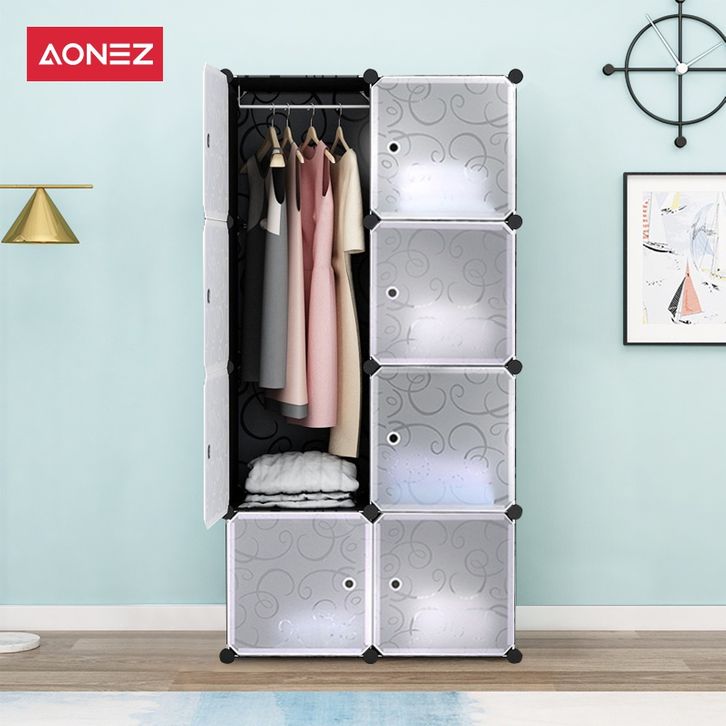 Lemari Plastik Lemari Pakaian Anak Wardrobe 6 muka 6 slot Dengan pagar plastik