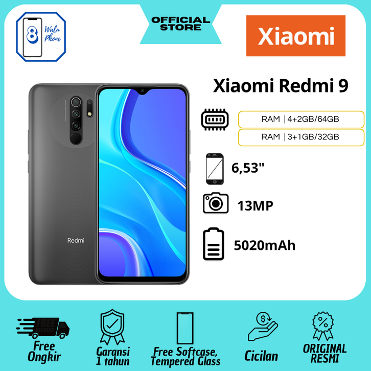 Xiaomi redmi 9 | 4+2/64GB | 5020mAh | Original | garansi
