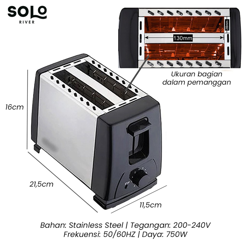 SOLO RIVER PEMANGGANG ROTI LISTRIK BREAD TOASTER 2 SLICE OTOMATIS