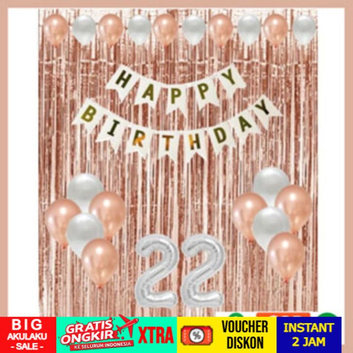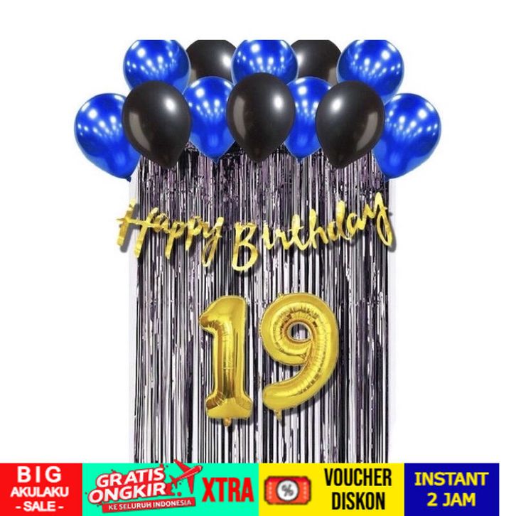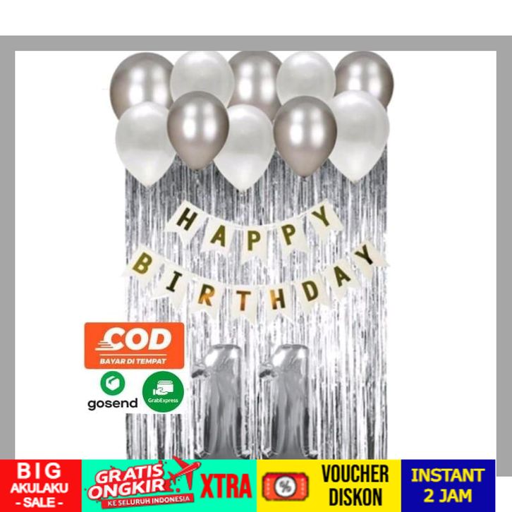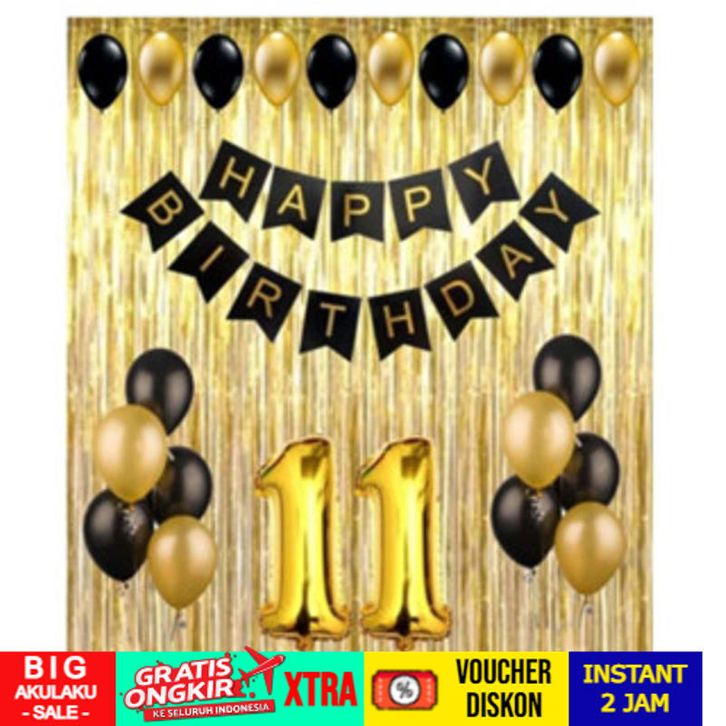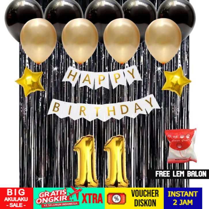 PROMO BISA CICILAN PAKET SET Dekor Ulang Tahun Anak Anak Paket Simple Balon Happy Birthday Dan Balon angka GO0LD 40cm