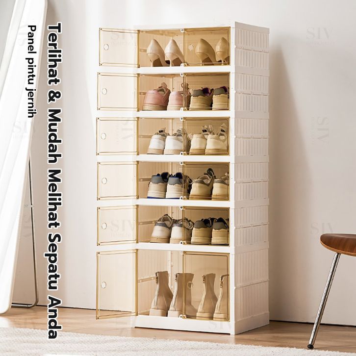 RAK SEPATU LIPAT BEBAS INSTALASI LEMARI SEPATU FORTABLE KOTAK SEPATU TRANSPARAN DAN TERTUTUP