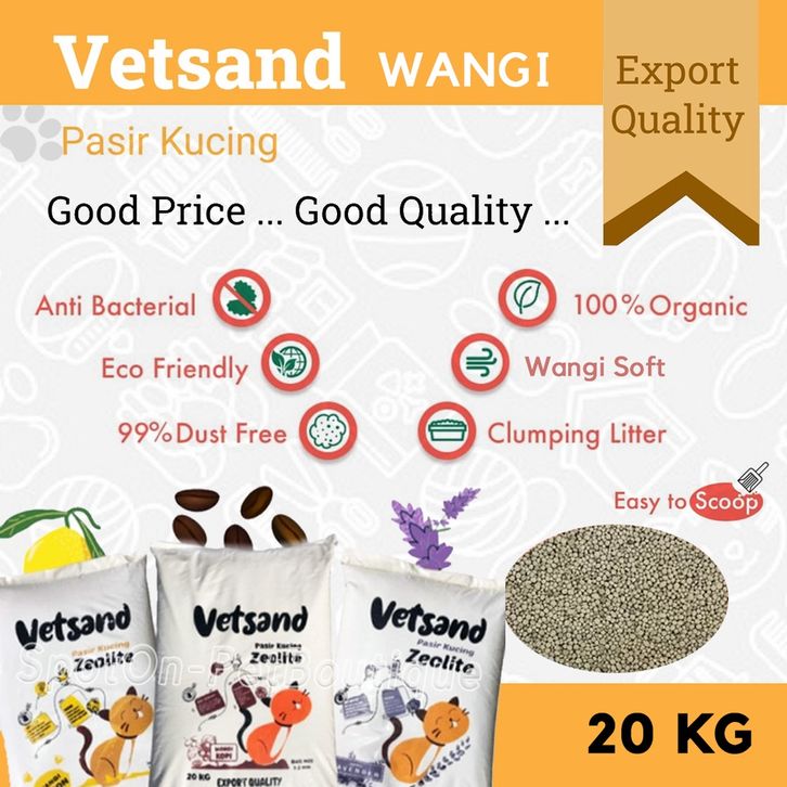 FREE ONGKIR Pasir Wangi Gumpal Kucing 20 Kg 25 L Vetsand Pro | Pasir Kucing Bentonite Zeolite 25L 20KG 20L Top Toto Cubn