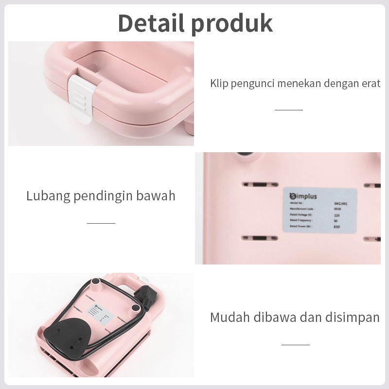 SIMPLUS SANDWICH MAKER PEMANGGANG ROTI TOASTER ANTI LENGKETLOW WATT BER 1 TAHUN