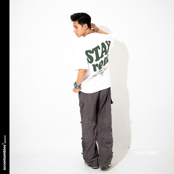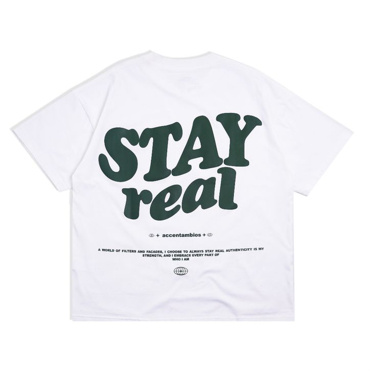 KAOS DISTRO OVERSIZE PRIA WANITA BOXY TSHIRT STAY REAL WHITE
