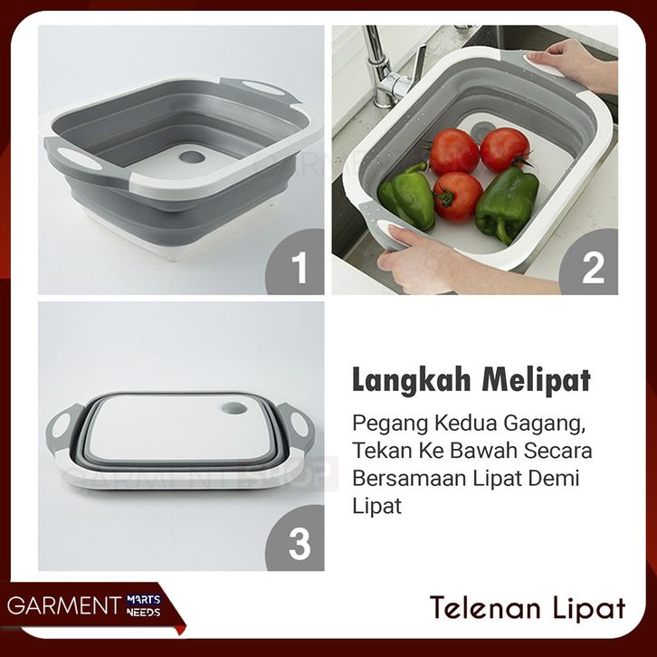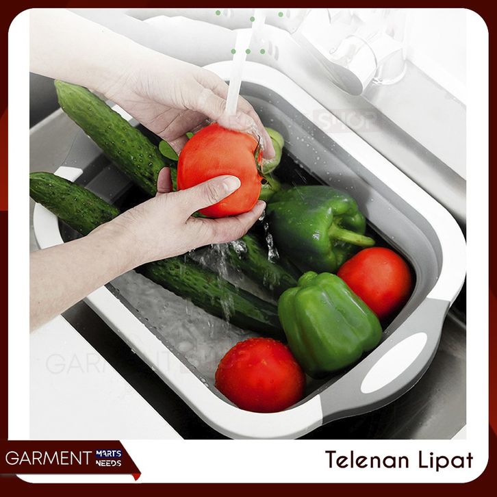 TALENAN BASKOM LIPAT 3 IN 1 MULTIFUNGSI TIRISAN BUAH SAYUR ANTI SLIP - TOKO SEJAHTERA PERABOT KEKINIAN TERLARIS