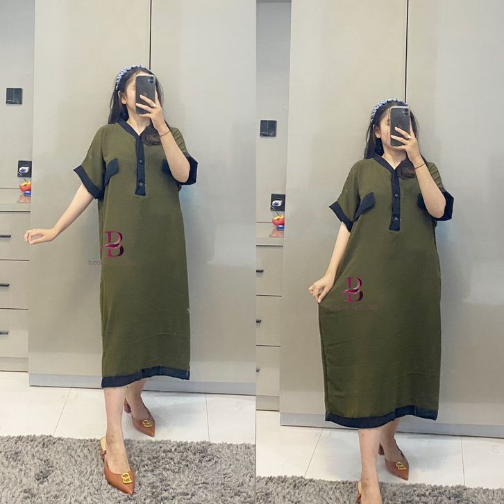 BAJU DASTER DRESS KEKINIAN WANITA REMAJA DEWASA BUMIL DAILY KOMBINASI LIST LENGAN PENDEK CRINKLE AIRFLOW BUSUI FRIENDLY