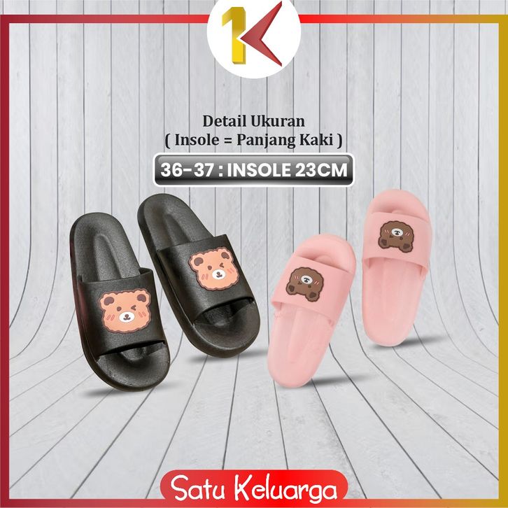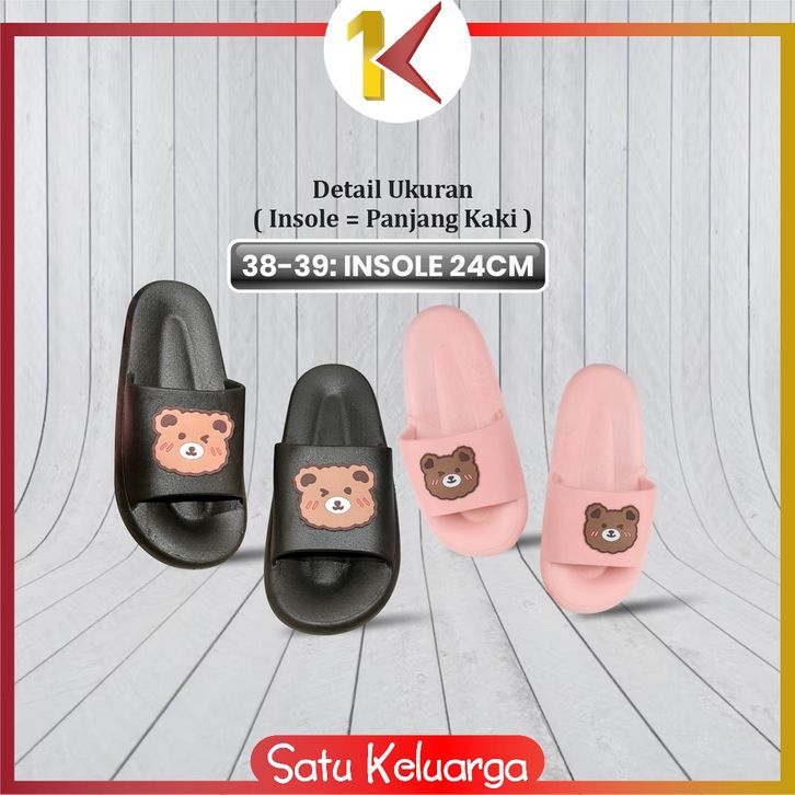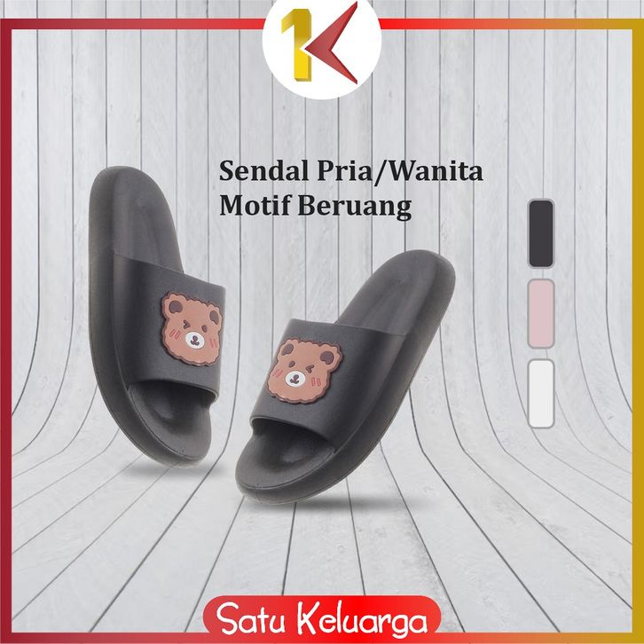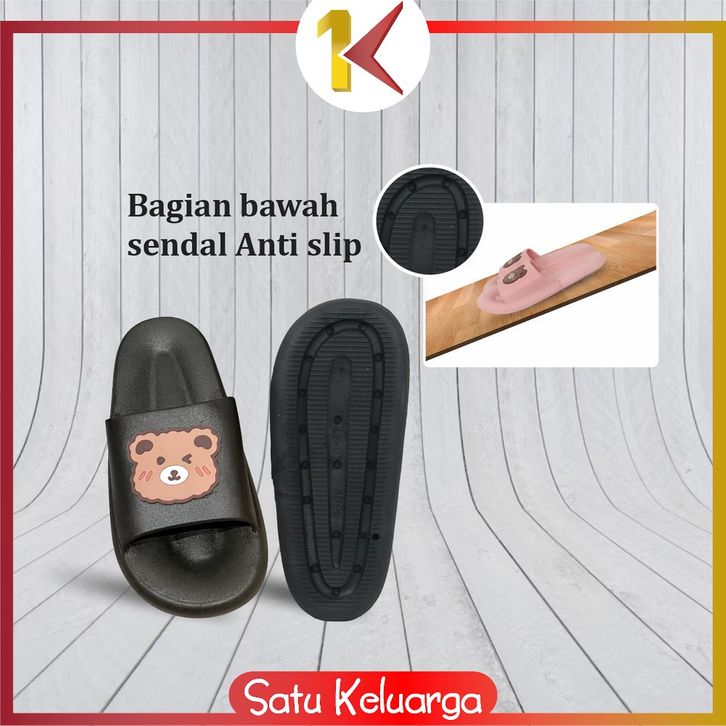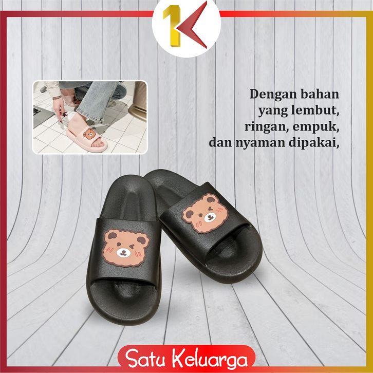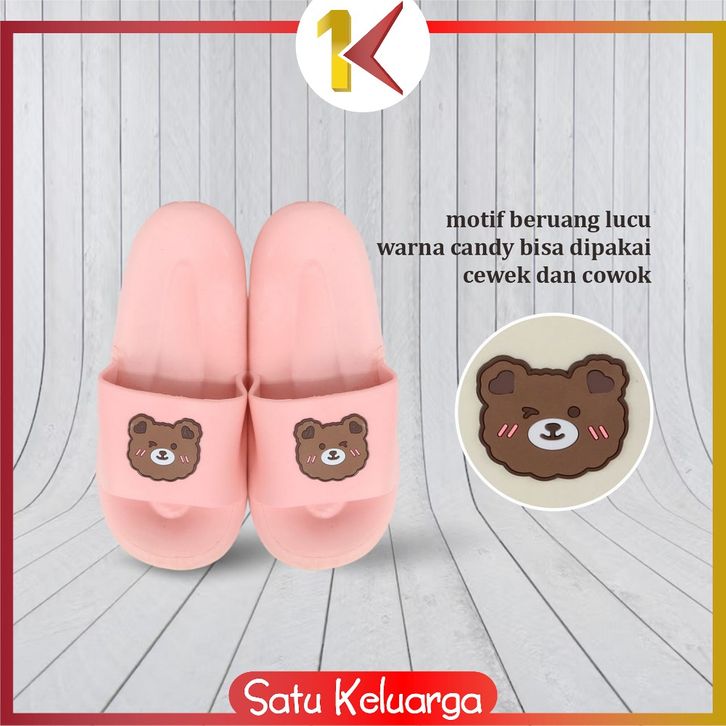 SK-S59 Sandal Wanita Motif Beruang Anti Slip Nyaman Empuk / Sandal Rumah Slip-On / Sendal Bear Wanita Pria / Sandal