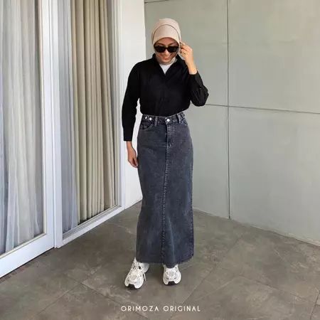 Rok Jeans Wanita Panjang Span Kekinian Skirt Import
